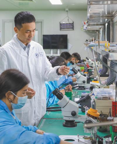 浙江大學(xué)衢州研究院科研人員在企業(yè)指導(dǎo)醫(yī)療器件表面涂層的產(chǎn)業(yè)化制備。