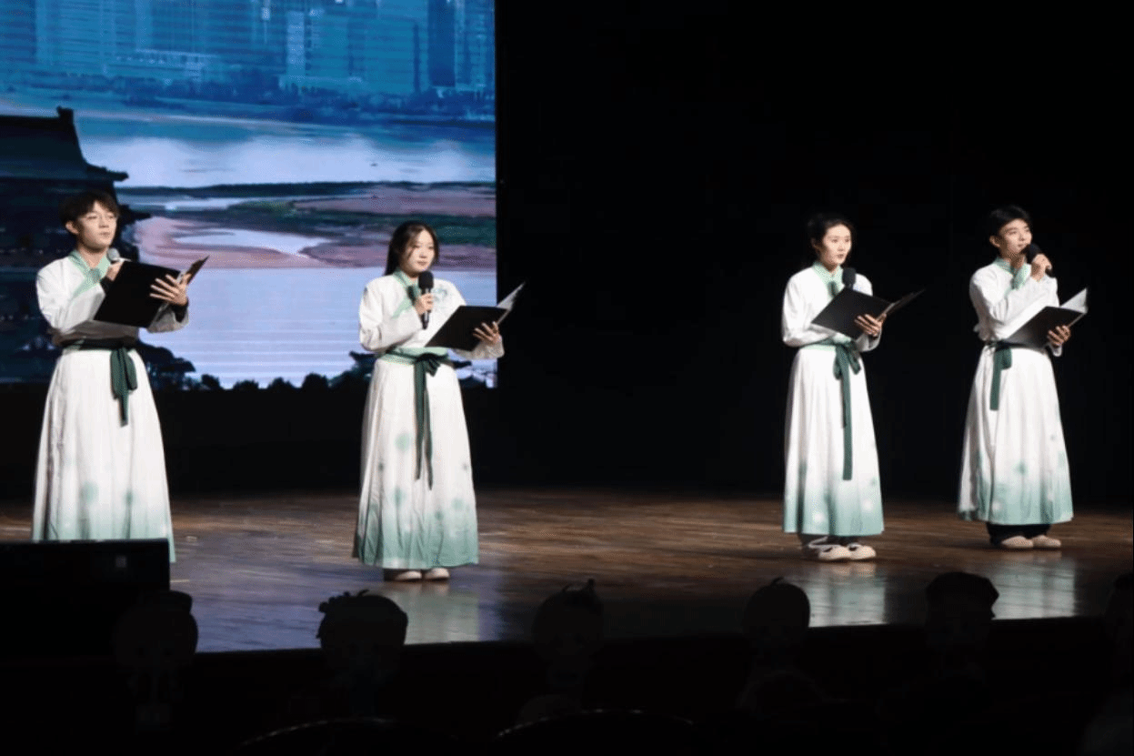 展演共分為“同心·共譜復(fù)興篇章”“同夢(mèng)·共繪團(tuán)結(jié)畫(huà)卷”“同行·共創(chuàng)輝煌征途”三大篇章,通過(guò)征文作品展示、優(yōu)秀社會(huì)實(shí)踐隊(duì)成果匯報(bào)、中華經(jīng)典誦讀、民樂(lè)演奏、歌舞表演等形式,呈現(xiàn)了我校鑄牢中華民族共同體意識(shí)宣傳教育的嶄新成果。